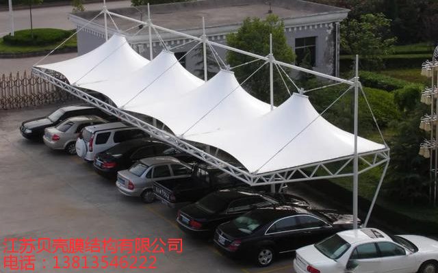 (3)為改善其性能,可在膜結(jié)構(gòu)車棚表面涂一層聚四氟乙烯涂層,提高其抗老化和自潔能力,其壽命可達到15年左右。
